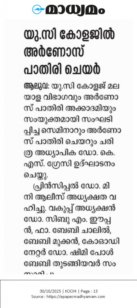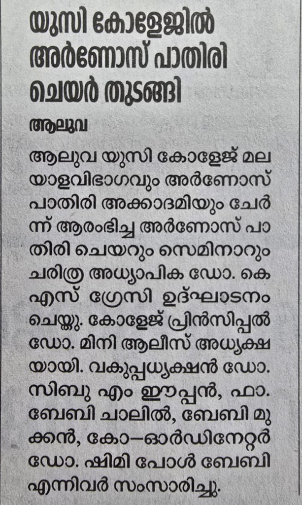 Union Christian College, Post Box: 5 Aluva - 683102 Kerala, India