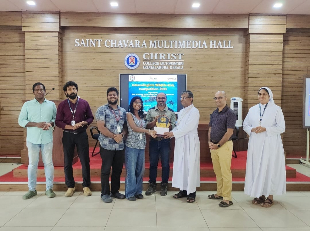Congratulations to Ms. Smrithi K. S. and Mr. Athul Raj of III Year B.Sc. Zoology, Union Christian College, Aluva, for winning First Prize at the Intercollegiate Wildlife Quiz Competition 2025, organised by the Department of Zoology, Christ College (Autonomous), Irinjalakuda, in collaboration with the Wildlife Trust of India and ORACLE, the event was held on 14th October 2025 at St. Chavara Hall, Christ College.