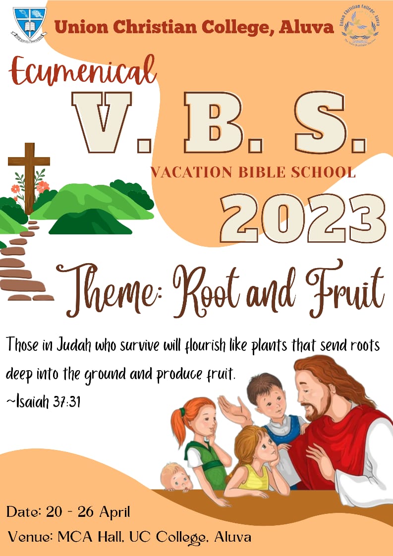 യു.സി കോളേജിന് സമീപമുള്ള ദേവാലയങ്ങളുടെ സംയുക്ത സഹകരണത്തോടെ നടത്തുന്ന എക്യുമെനിക്കൽ വി.ബി.എസ് ഏപ്രിൽ 20 മുതൽ 26 വരെ നടക്കുന്നതാണ്.