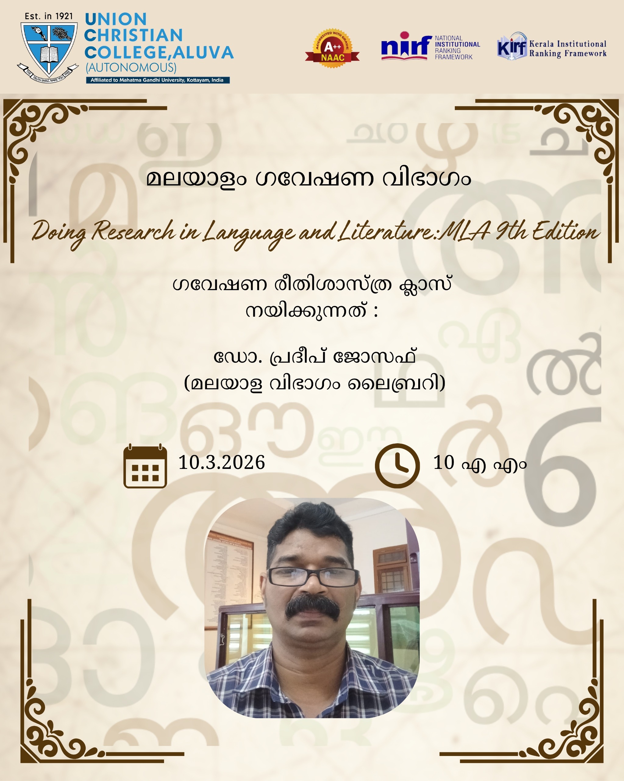 Home News and Events ഗവേഷണ രീതിശാസ്ത്ര ക്ലാസ്