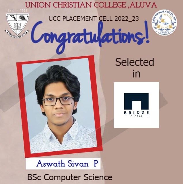 Congratulations to Aswath Sivan P. (Dept. of Computer Science) for securing a job offer from Bridge Global.