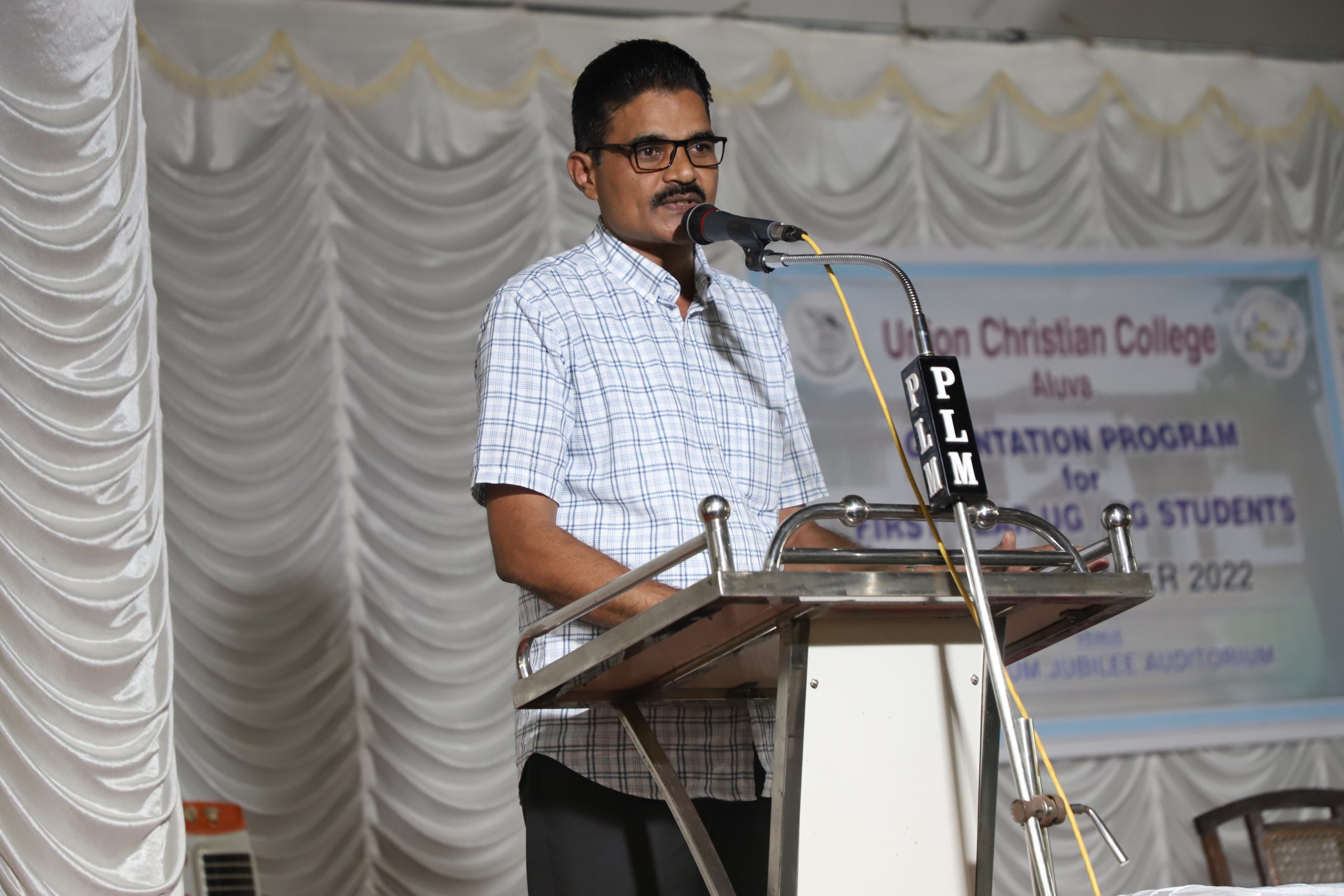 The Student Induction Programme for the newly admitted first-year students was held at the Platinum Jubilee Auditorium at Union Christian College, Aluva, today, at 9:30 a.m. The Inaugural Session commenced with Dr. M. I. Punnoose, Principal, Union Christian College, Aluva, welcoming the students and their parents to the UCian community. Rev. T. Thomas John, the College Manager, delivered the Manger’s Address. Respective faculty representatives, of various organizations, offices and clubs of UC College, introduced the students to the activities of the same: Maj. K. S. Narayanan representing the NCC Unit of the College, Dr. Asha Baby Mathews, the NSS Unit, Dr. Marykutty P. J. representing the Counselling Centre of the College – BLISS, Dr. Bindu M., the Physical Education Department, Mr. Soni Varghese, the Administrative Office and Ms. Sheethal V. R., the Placement Cell. Dr. Madhu K. delivered the vote of thanks.