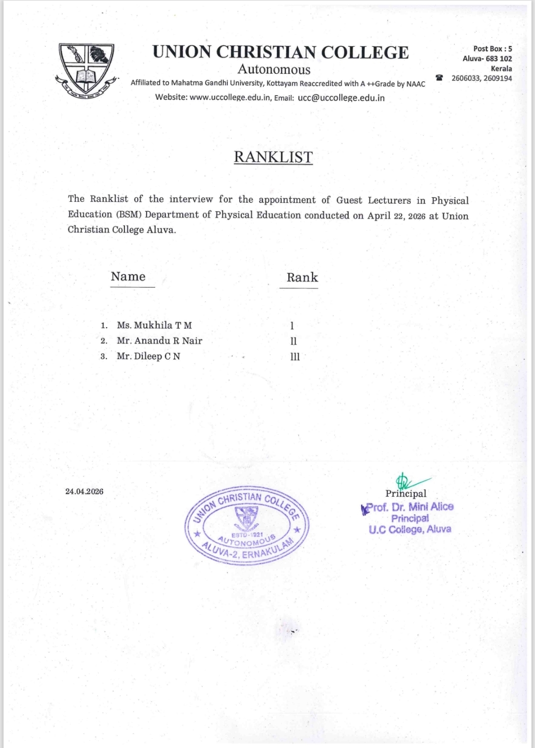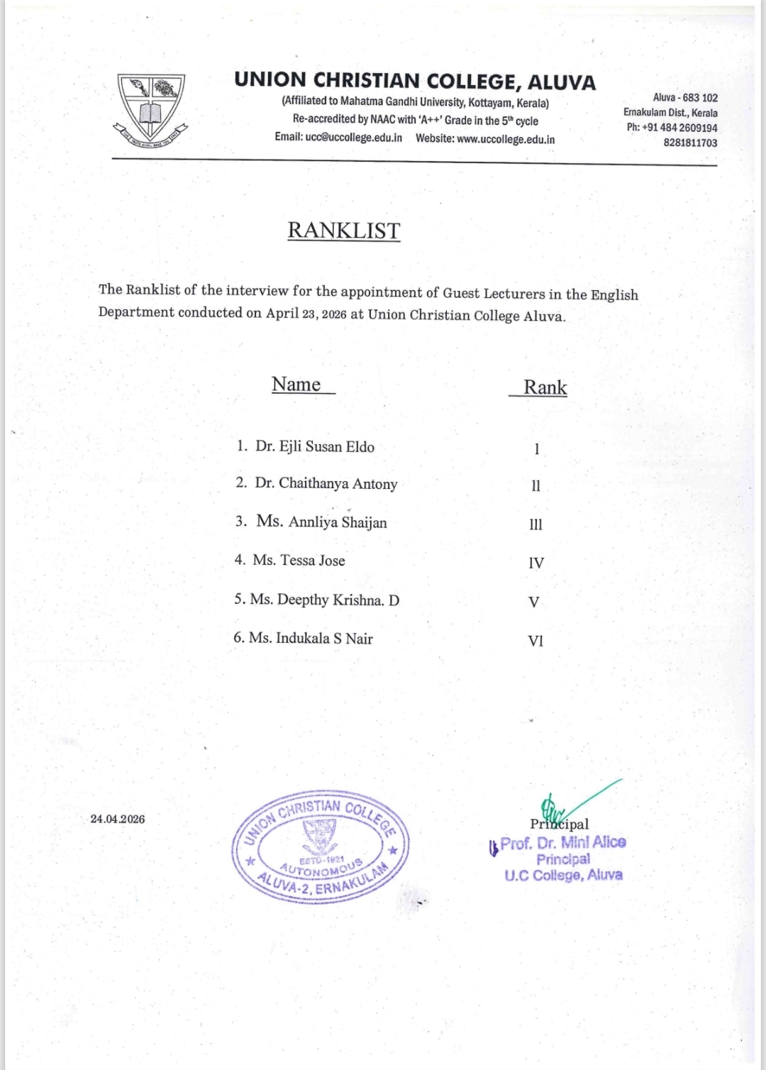 Rank Lists – Guest Lecturers